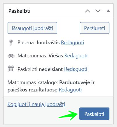 Arba, galite išsaugoti produktą kaip juodraštį „Išsaugoti juodraštį“, jeigu kol kas nenorite, kad prekė būtų matoma svetainės lankytojams.