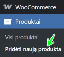 Norėdami sukurti naują prekę, eikite į Produktai -> Pridėti naują produktą. Atsidarys prekės kūrimo langas, kuriame reikės užpildyti kelias svarbias skiltis.